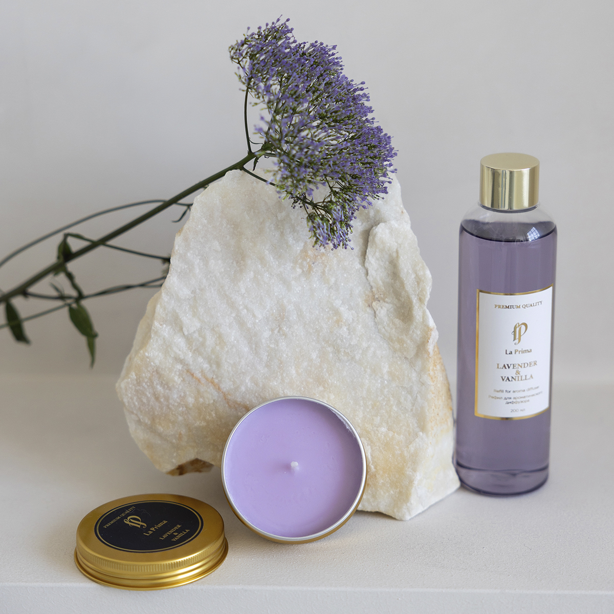 «Lavender & Vanilla» Аромат - Тонкий, изящный и прохладный аромат лаванды - признанной королевы парфюмерии. Этот неповторимый запах безмятежности, спокойствия и чистоты переносит на знаменитые лавандовые поля Прованса во Франции. Его расслабляющий шлейф снимает раздражительность, стресс, беспокойство и оказывает успокаивающий эффект, а сочетание с ванилью привносит интригующие нотки.