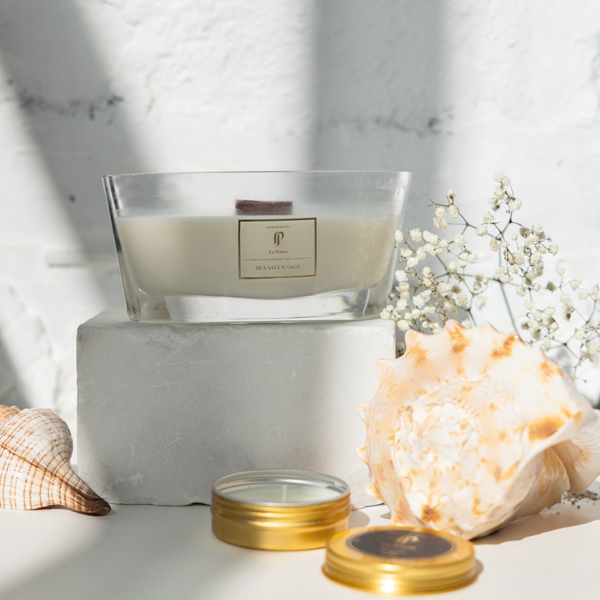 Свеча ароматическая  La Prima 250 гр. Sea salt & sage | Свеча ароматическая  Sea salt & sage 250 гр.