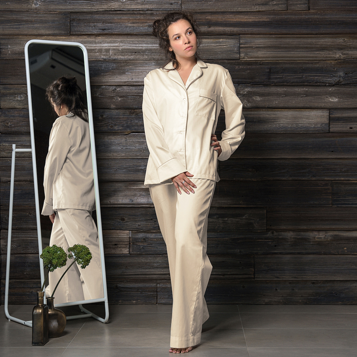 Пижама выполнена из 100% длинноволокнистого египетского хлопка высшего сорта, очень мягкого и приятного на ощупь - доставит удовольствие от каждого прикосновения