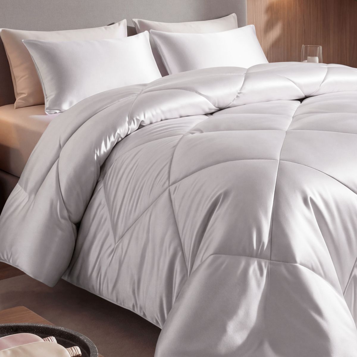 Благодаря объемному наполнителю одеяло обволакивает приятной тяжестью, создавая эффект антистресс-объятий, тем самым помогая полноценно расслабиться и быстрее заснуть.
