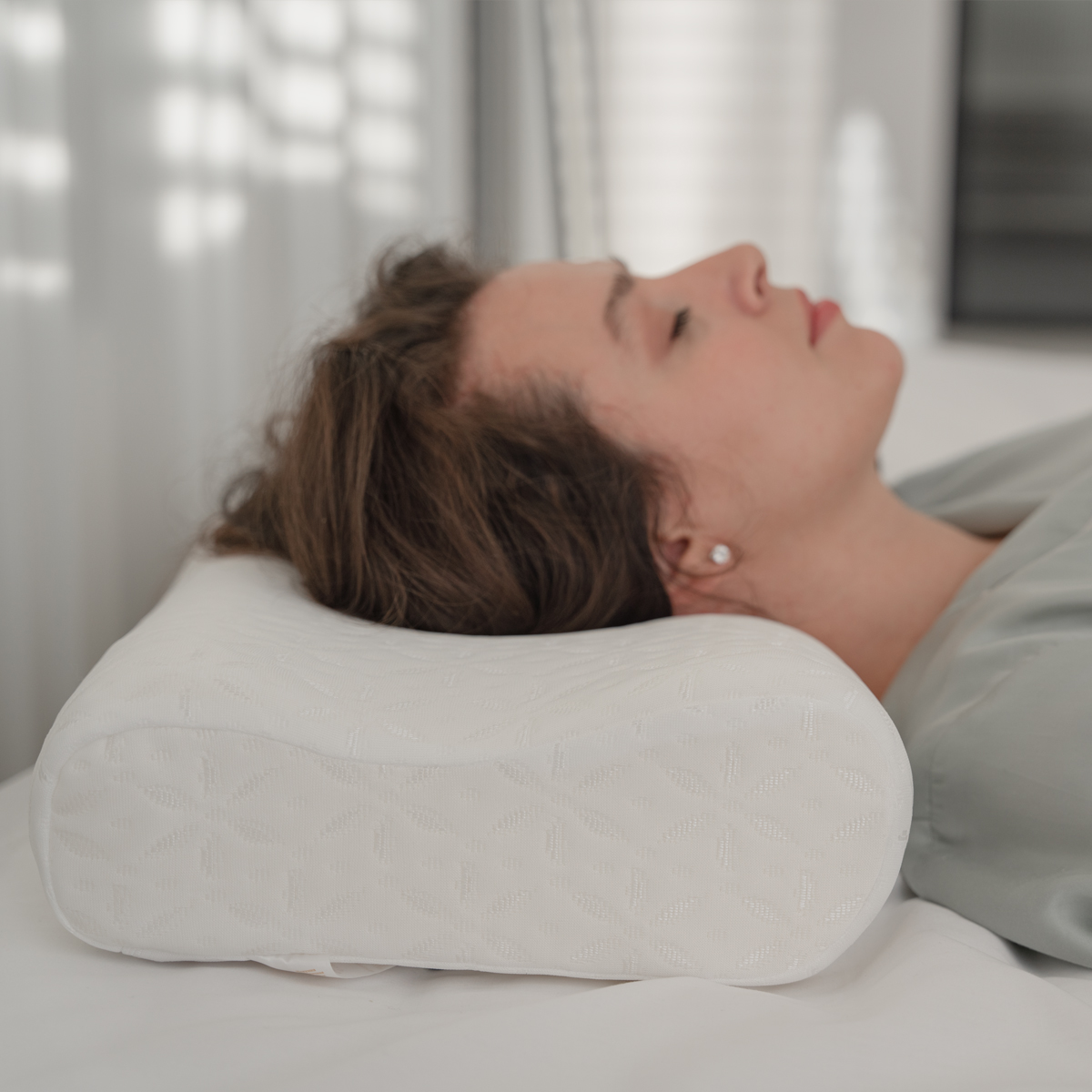 Классическая эргономичная подушка, благодаря использованию которой вы почувствуете, что сон стал глубже, положение головы и шеи удобнее, а самочувствие лучше.
