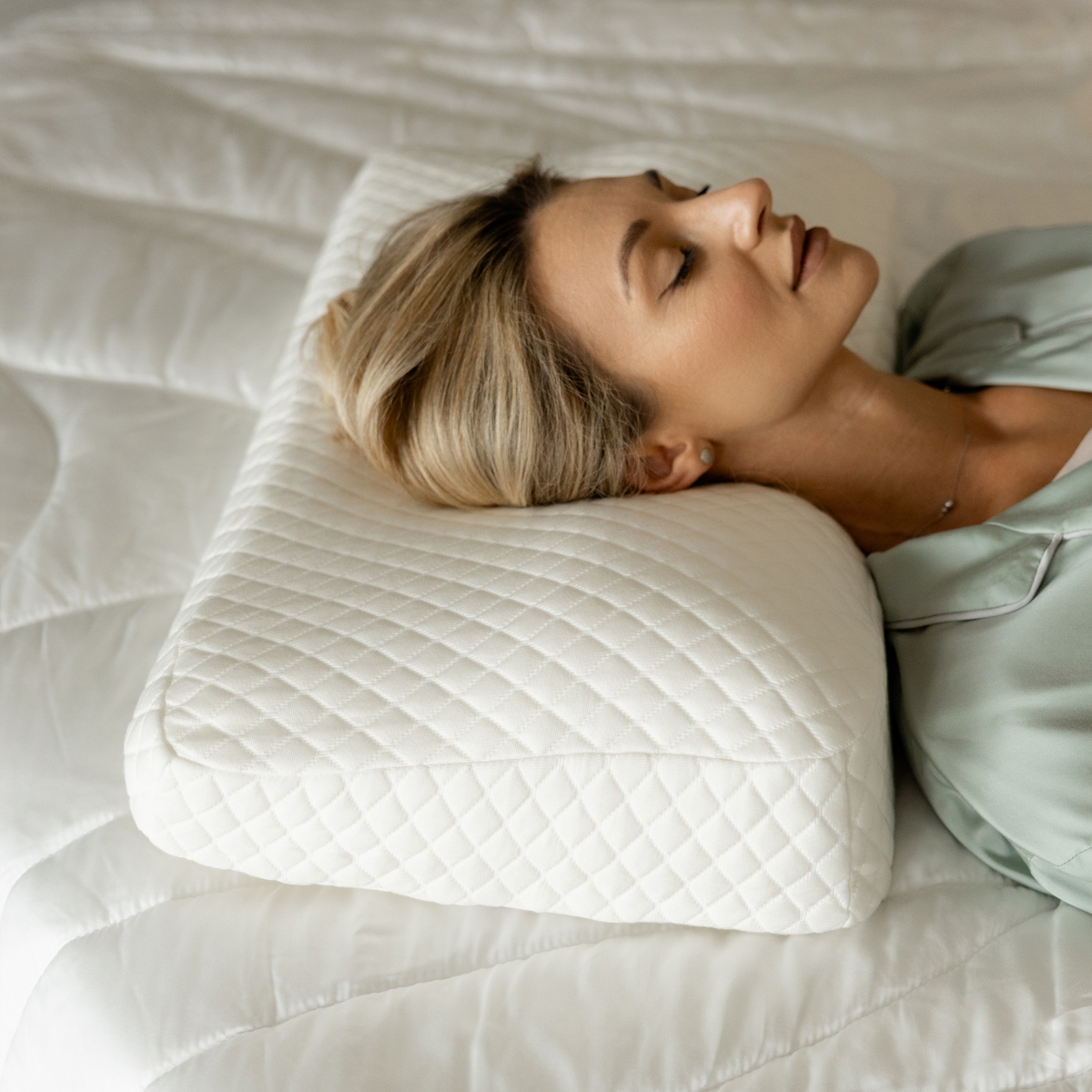 - Борьба с отеками: правильное положение головы исключает застой лимфы, помогая проснуться со свежим и отдохнувшим лицом без мешков и припухлостей.