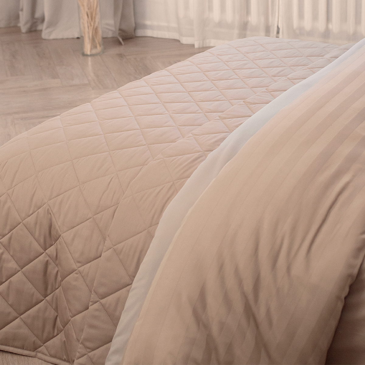 ОСОБЕННОСТЬ модели: хлопковое покрывало на кровать с закругленным уголком, практичной окантовкой по периметру изделия и стильной стежкой в виде ромбов. Верхняя и нижняя часть покрывала выполнены из высококачественного сатина - безопасного и натурального материала.