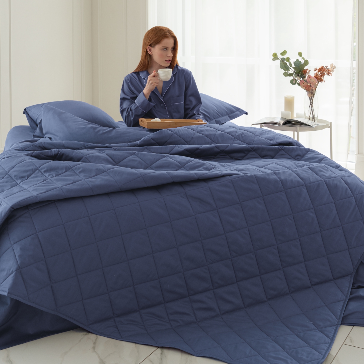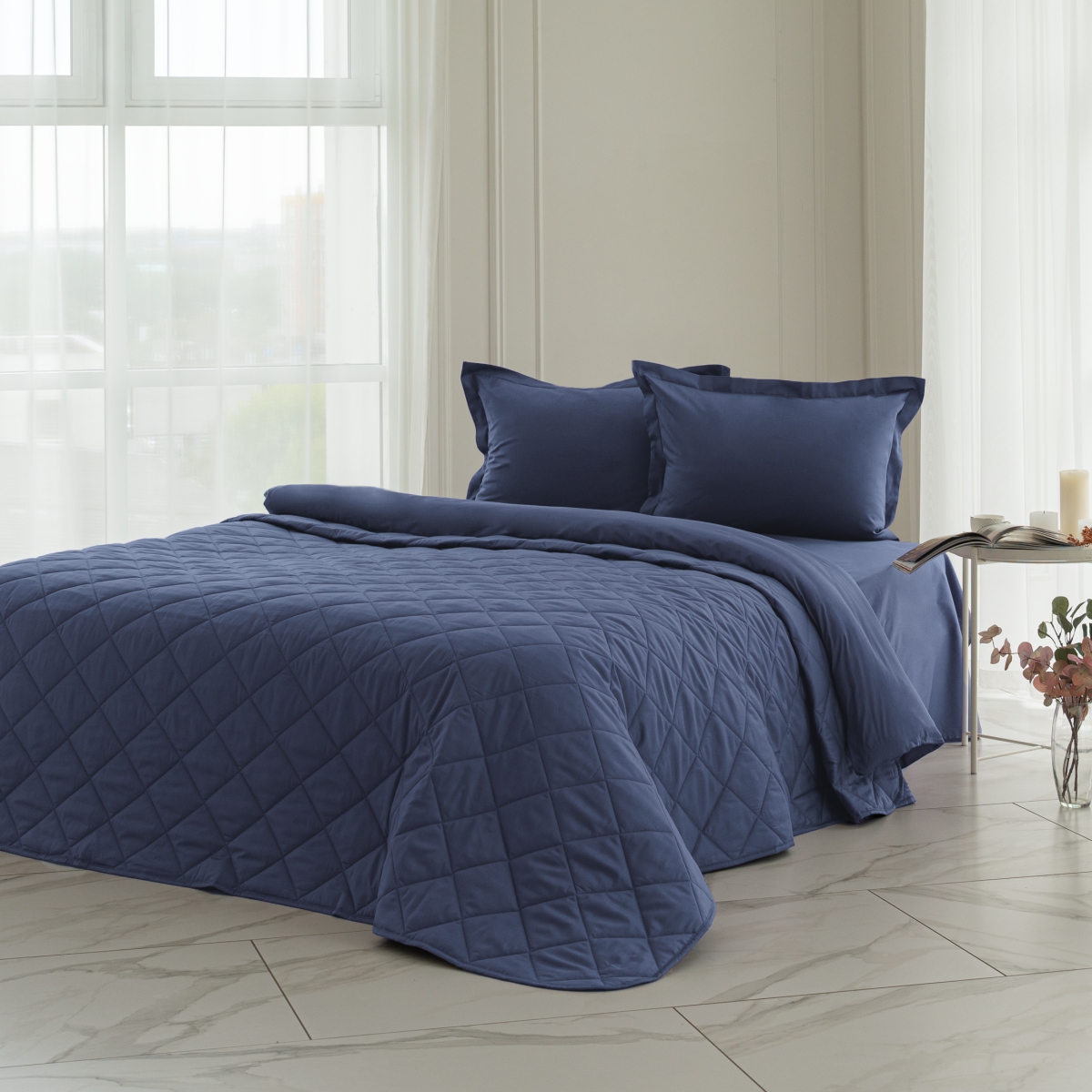 Нежное двухстороннее стеганое покрывало из 100% хлопка (сатин, плотность 205ТС) с гипоаллергенным 3D-наполнителем (100 г/м²) создано для тех, кто ценит: