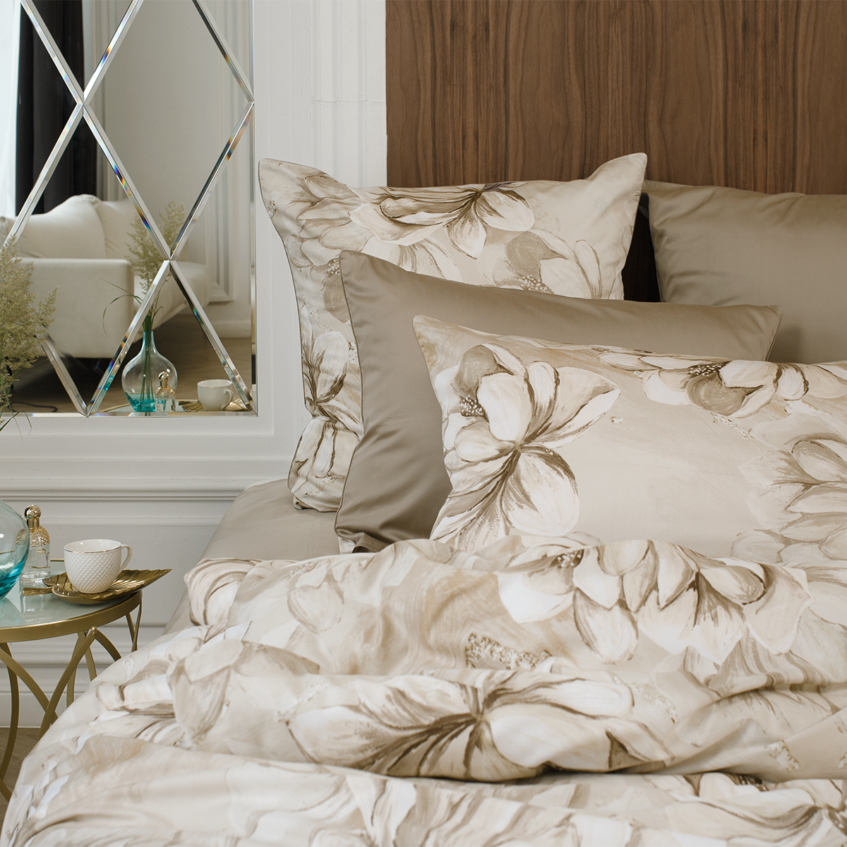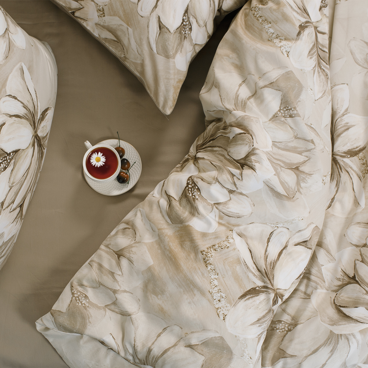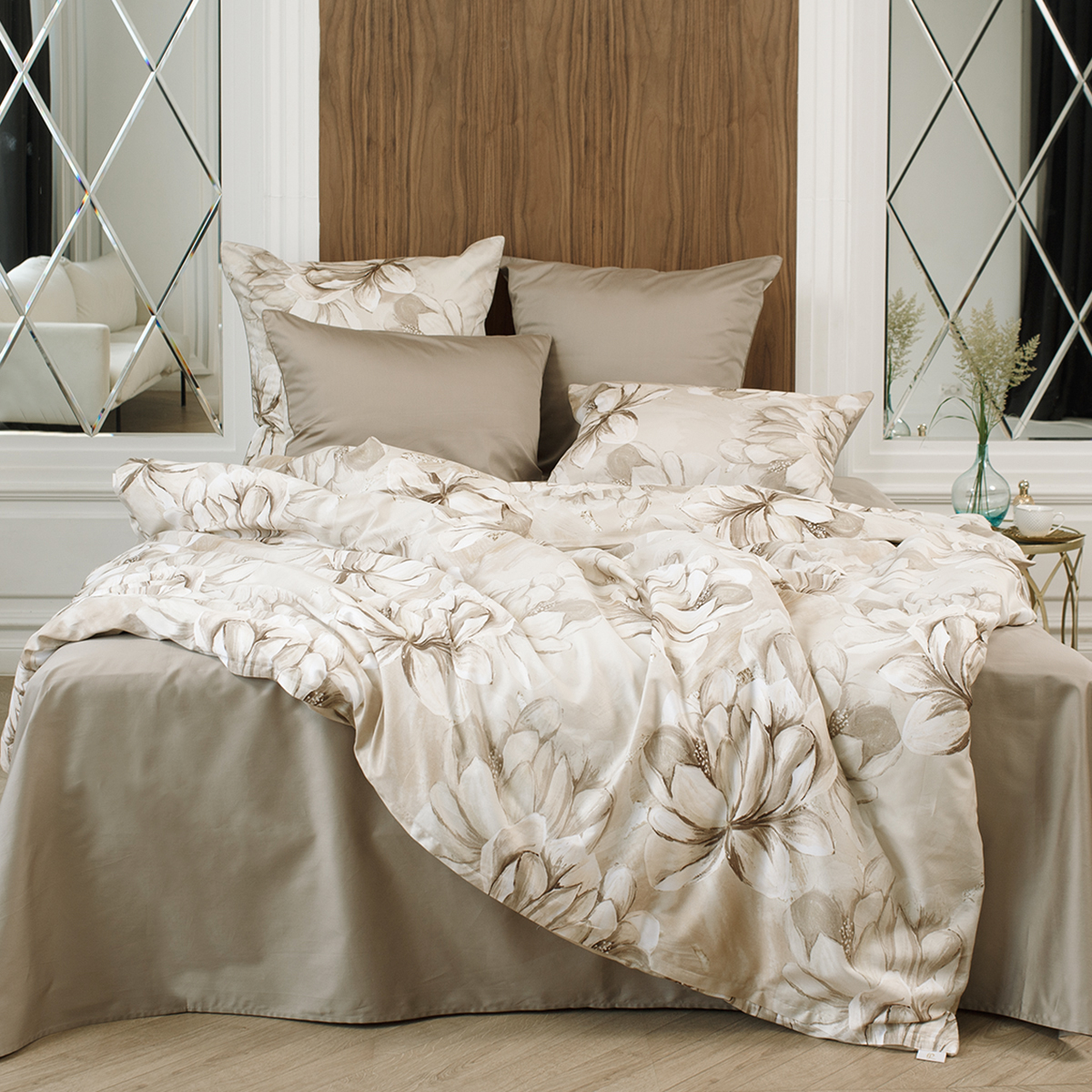 В ткани мако-сатин, из которой произведена коллекция, используется более тонкая 60-я нить. Плотность ткани 300 ТС. За счет специальной скрутки нити, ткань получается очень мягкая и приятная на ощупь.