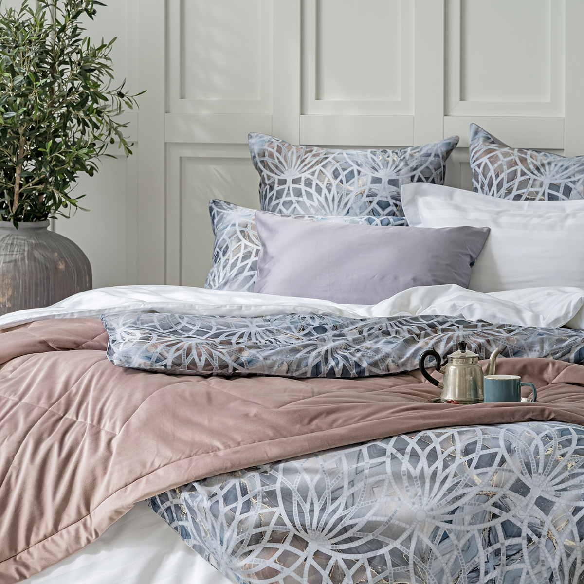 Нет ничего прекраснее кровати, которая так и манит в свои нежные объятия! Наши исключительно мягкие комплекты из мако-сатина действуют именно так — они дышащие, гладкие, прочные и словно созданы для аристократической спальни.