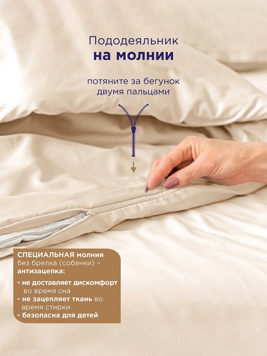 • пододеяльник 200х220 см с «невидимой» молнией-антизацепкой по всей ширине и клапанами для вдевания одеяла.