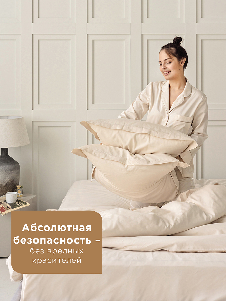 Благодаря натуральному составу, комплект постельного белья хорошо пропускает воздух, поддерживает комфортную температуру тела, когда вы спите. Это гарантирует более спокойный сон с заботой о вашей утренней бодрости.
