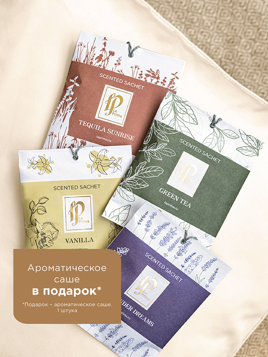 В каждой коробке вы найдете комплимент от нас — ароматическое саше, которое удобно повесить в шкаф или положить в ящик с постельным бельем.