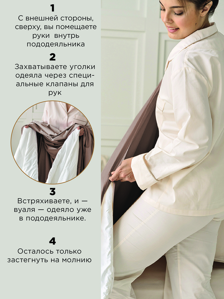 - Встряхиваете одеяло и улыбаетесь, ведь оно уже в пододеяльнике!