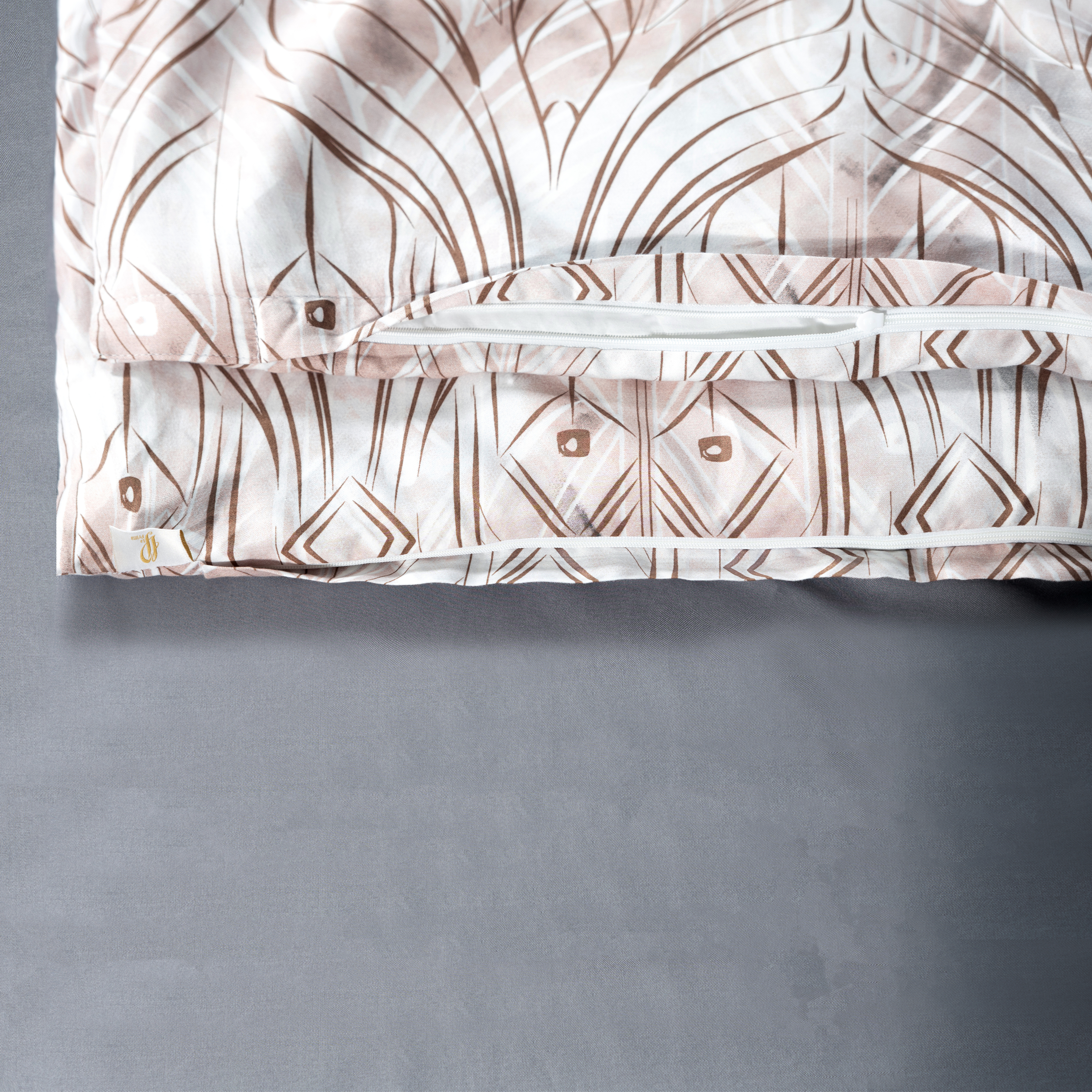 • «Невидимая» молния во всю ширину по нижнему краю пододеяльника. Для быстрой и удобной смены постельного белья в верхней части пододеяльника расположены клапаны для рук. Сменить пододеяльник можно за 30 секунд.
