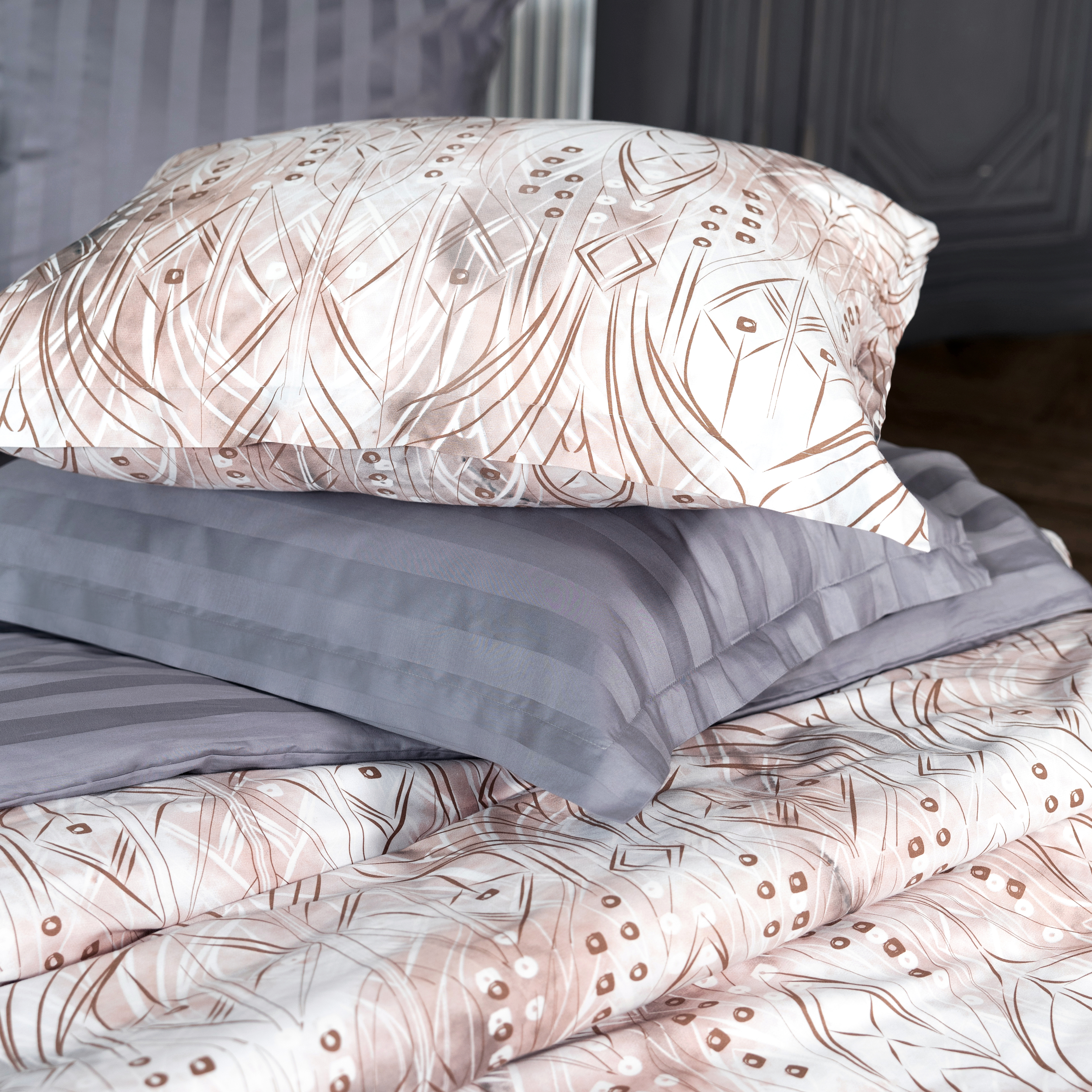 Роскошный комплект постельного белья Аурелия из люкс-сатина – это идеальное сочетание тактильного комфорта, стильных абстрактных принтов и ультрамодных расцветок. Нежные розово-бежевые оттенки создадут уют и гармонию в любой спальне, будь то классический интерьер или современный минимализм.