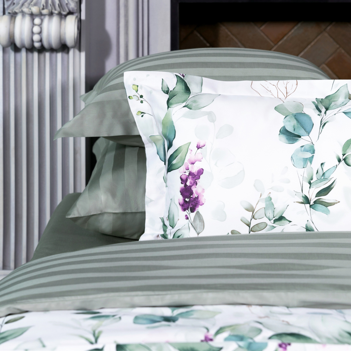 Роскошный комплект постельного белья Асоль из люкс-сатина - изящный и нежный акварельный растительный принт на белоснежном фоне вдохновляет утренней свежестью и романтичным флером.