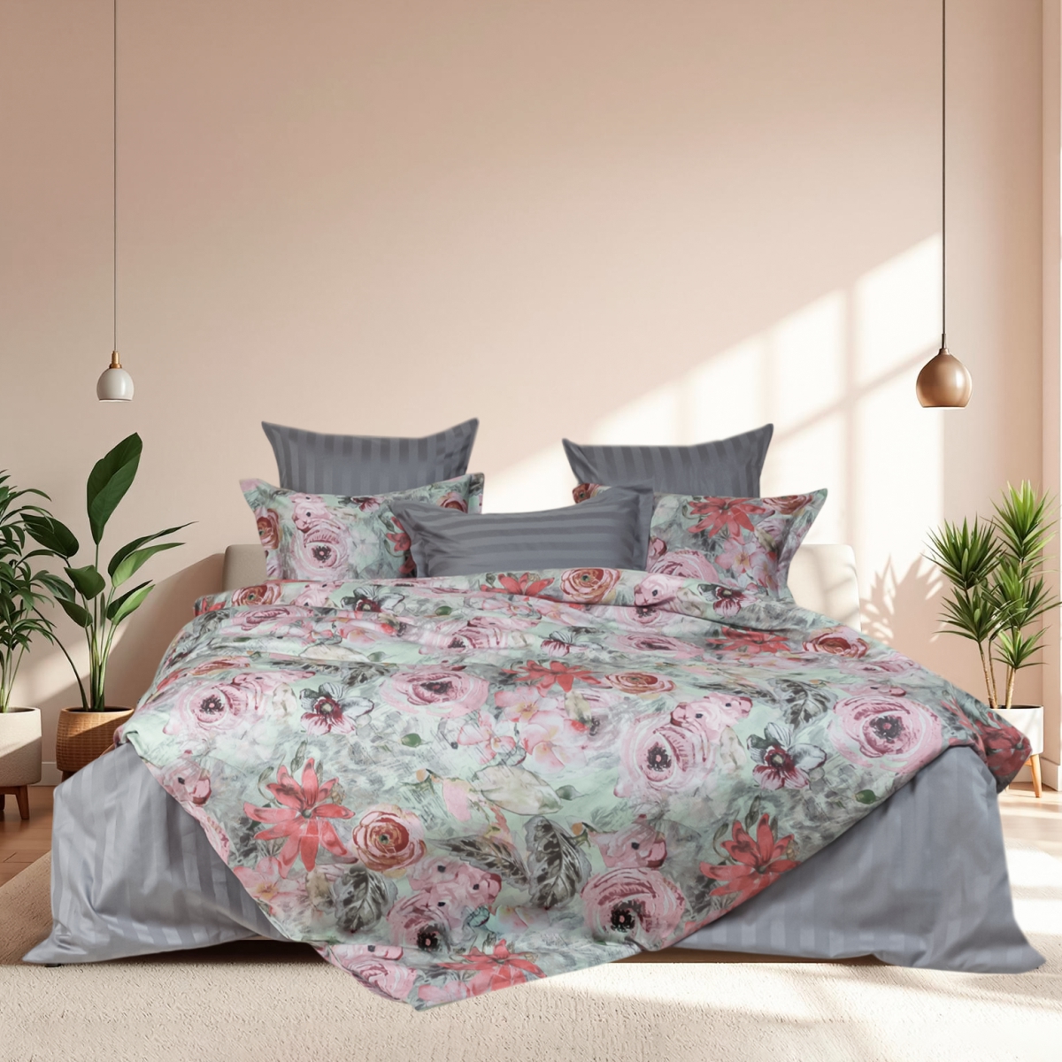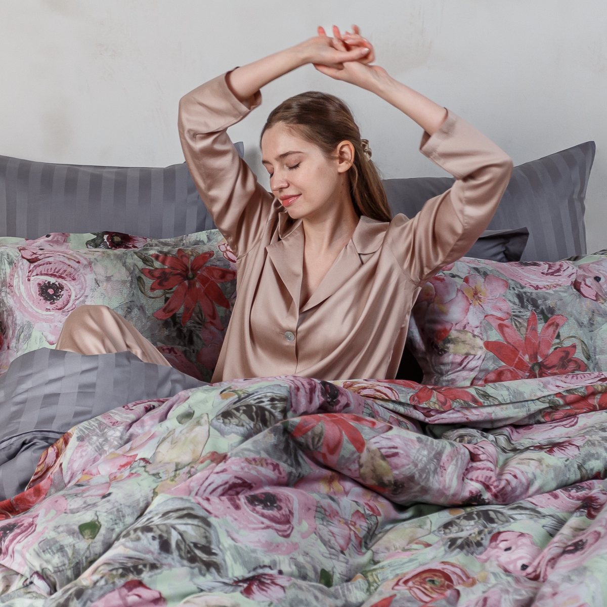Яркий дизайн, вдохновленный природой, переносит в мир чувственной красоты, где каждый цветок — часть гармоничной композиции. Глубокая палитра и насыщенный принт создают роскошный и современный стиль. Идеально для тех, кто ценит красоту природы и стремится к уютной, теплой атмосфере в спальне.