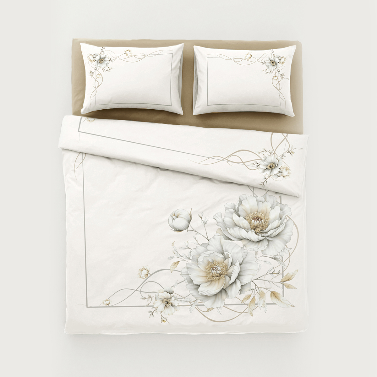 Каждый комплект коллекции — это роскошный 100% египетский хлопок высшего сорта, который является самым экологически чистым в мире. В ткани мако-сатин, из которой произведена коллекция, используется более тонкая 60-я нить. Плотность ткани 300 ТС. За счет специальной скрутки нити, ткань получается очень мягкая и приятная на ощупь.