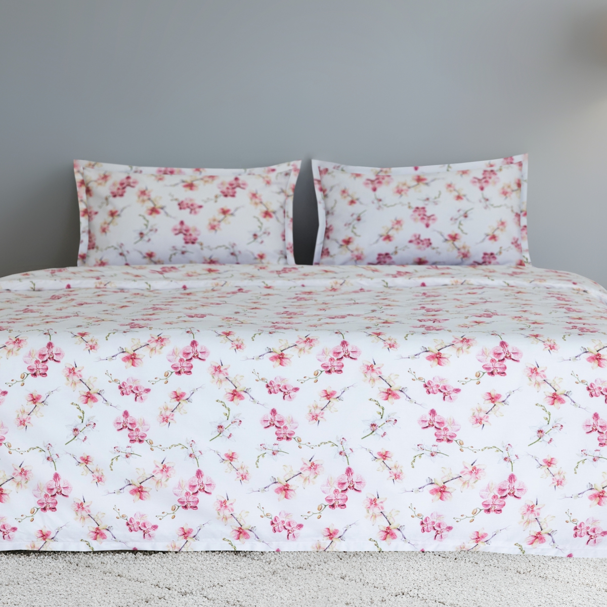 Дизайн «Этюд» - представьте утро, когда за окном — осенняя дымка, а в вашей спальне — по-летнему светло. Идеально белый фон комплекта, как первый искристый иней, отражает свет и наполняет комнату ощущением чистоты и простора. А утонченные орхидеи, застывшие в шелковистой глади сатина, — это напоминание о вашей собственной изысканности и внутренней силе. .