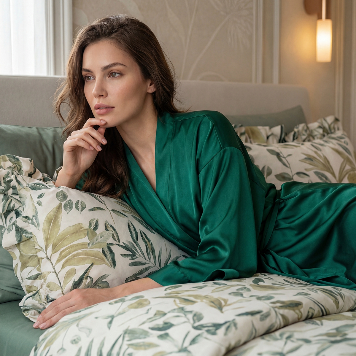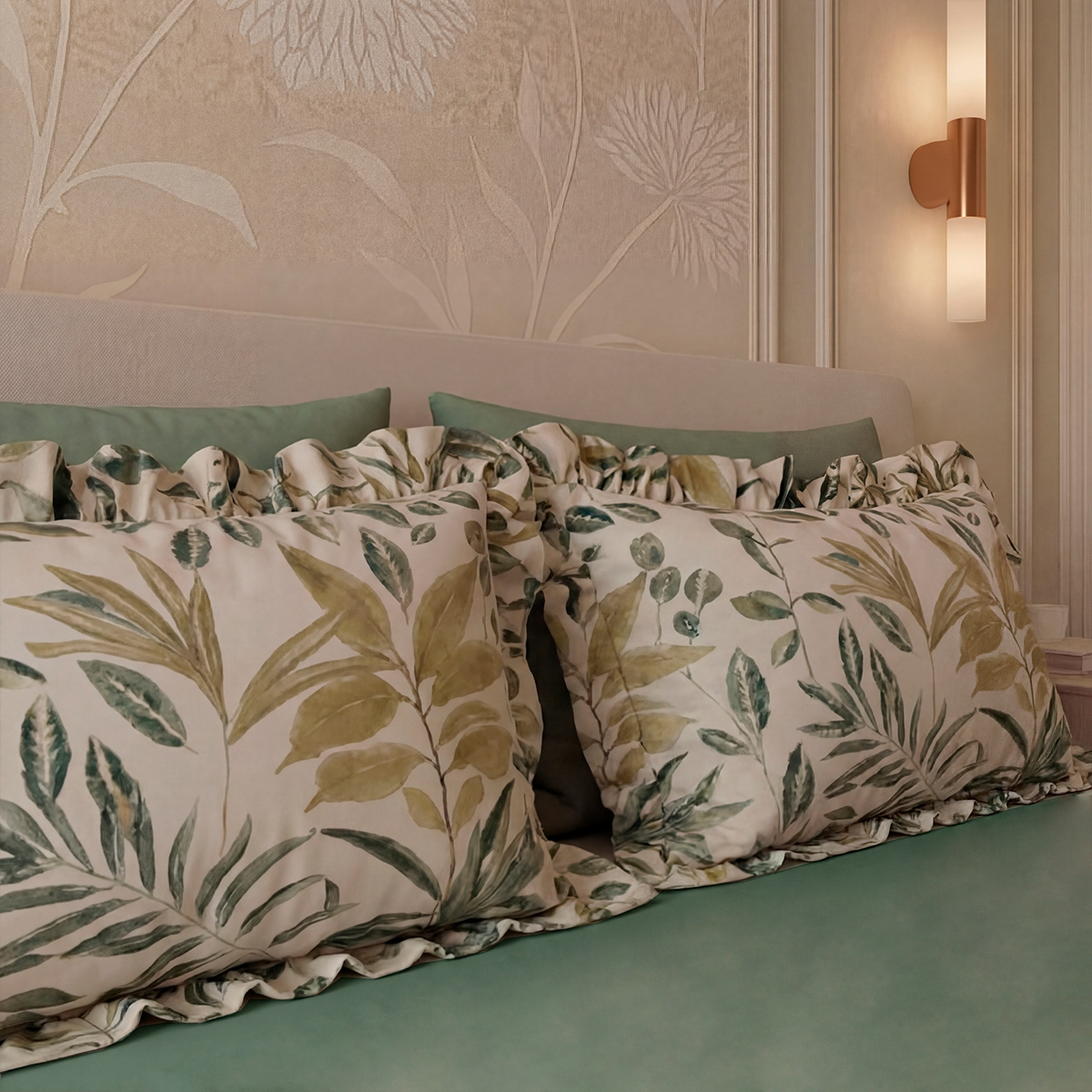 «Мариана»: Стильный растительный принт на молочно-бежевом фоне. Утонченный и современный. Привносит в спальню свежесть, легкость и природную гармонию.