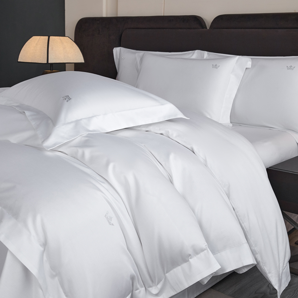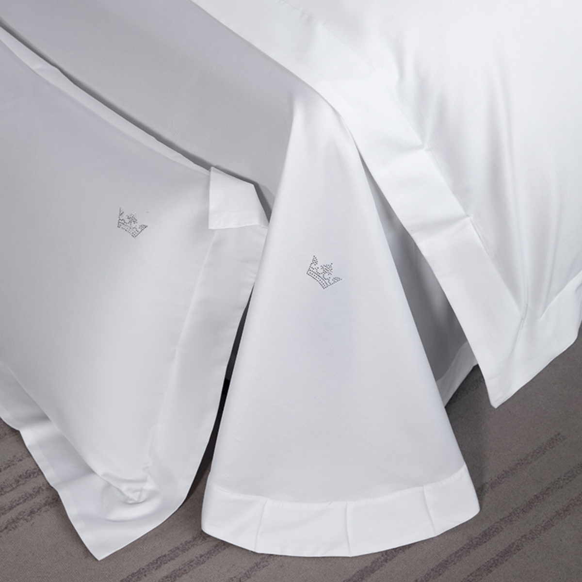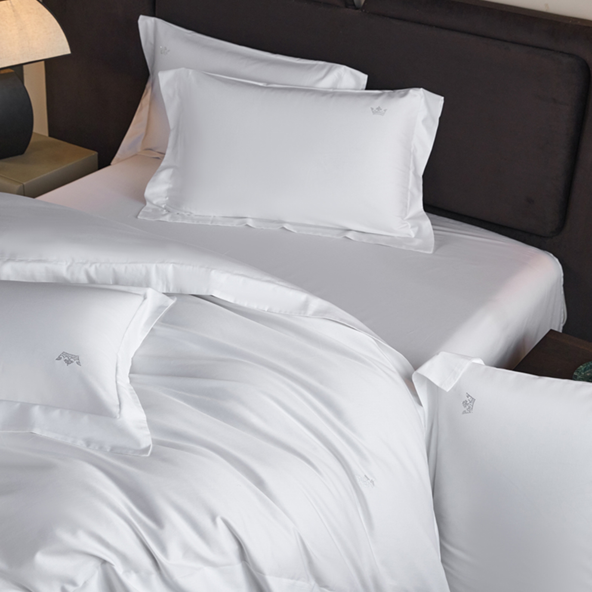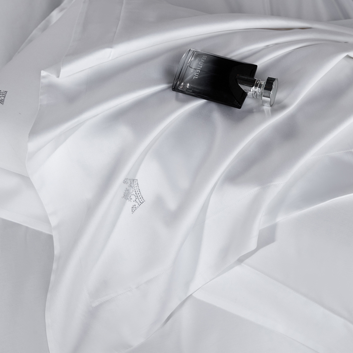 Кручёная нить придаёт материалу дополнительную прочность и создаёт эффект премиального сияния. Сатиновое плетение обеспечивает шелковистую гладкость: ткань остаётся прохладной на ощупь, но при этом уютной и тёплой, подстраиваясь под тело и делая отдых особенно комфортным.