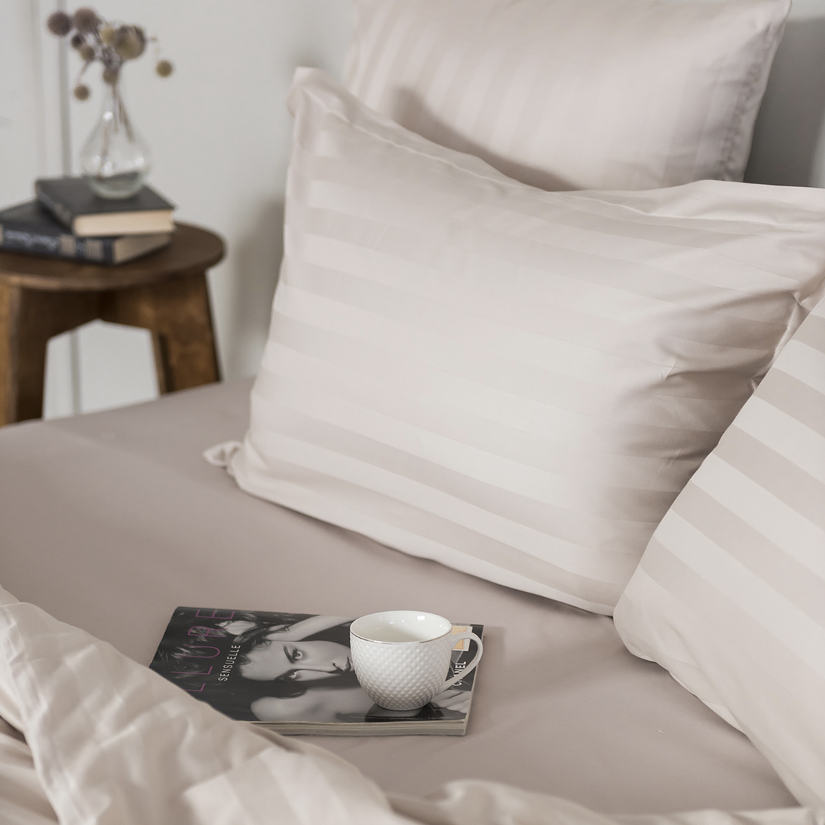 Однотонный стильный пододеяльник произведен из ткани страйп-сатин – 100% хлопок с жаккардовым рисунком в виде полос 3х3