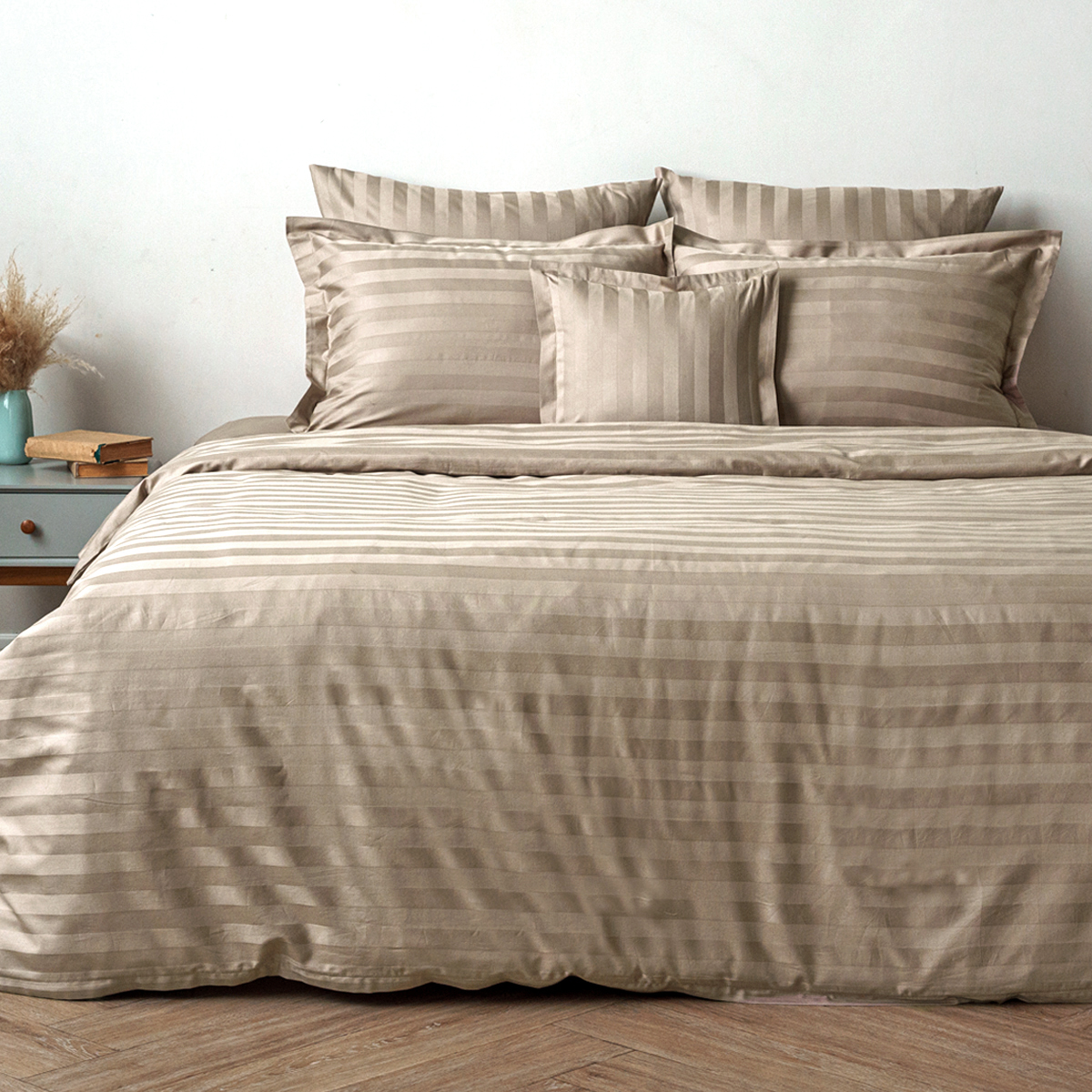 Пододеяльник Страйп-сатин | Пододеяльник Страйп-сатин Капучино