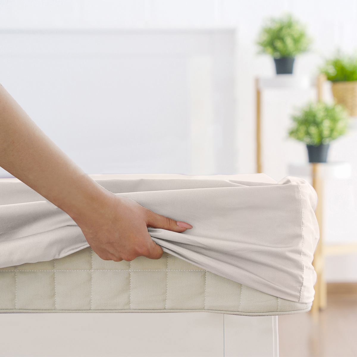 Детали: тонкая резинка по всему периметру простыни для плотной фиксации на матрасе.