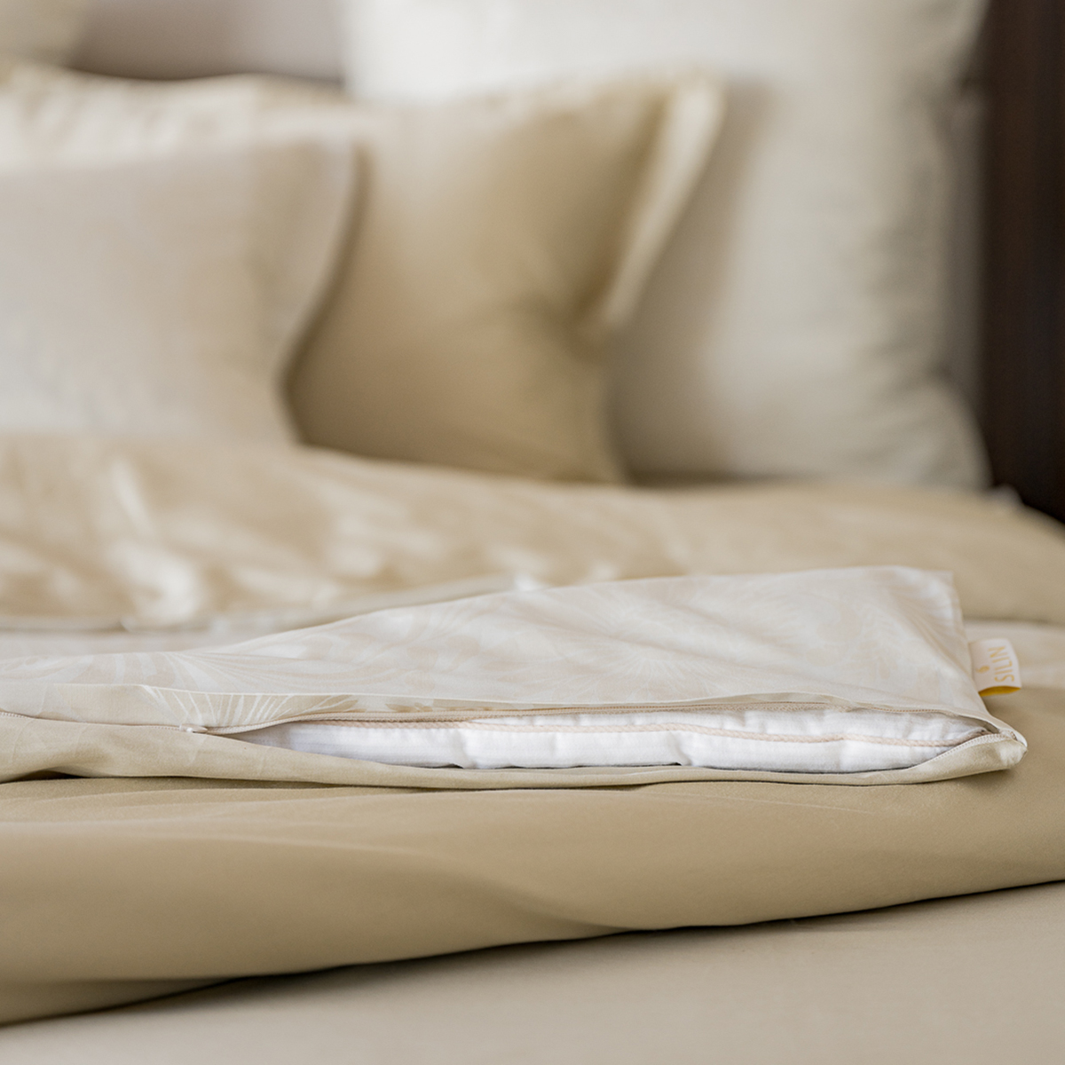 - Лицевая сторона наволочек и пододеяльника выполнена из жаккардовой ткани, оборотная из премиального длинноволокнистого хлопка сорта Пима