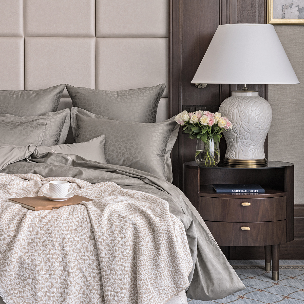 • Лицевая сторона наволочек и пододеяльника выполнена из роскошного жаккарда, оборотная из однотонного хлопка сорта Pima