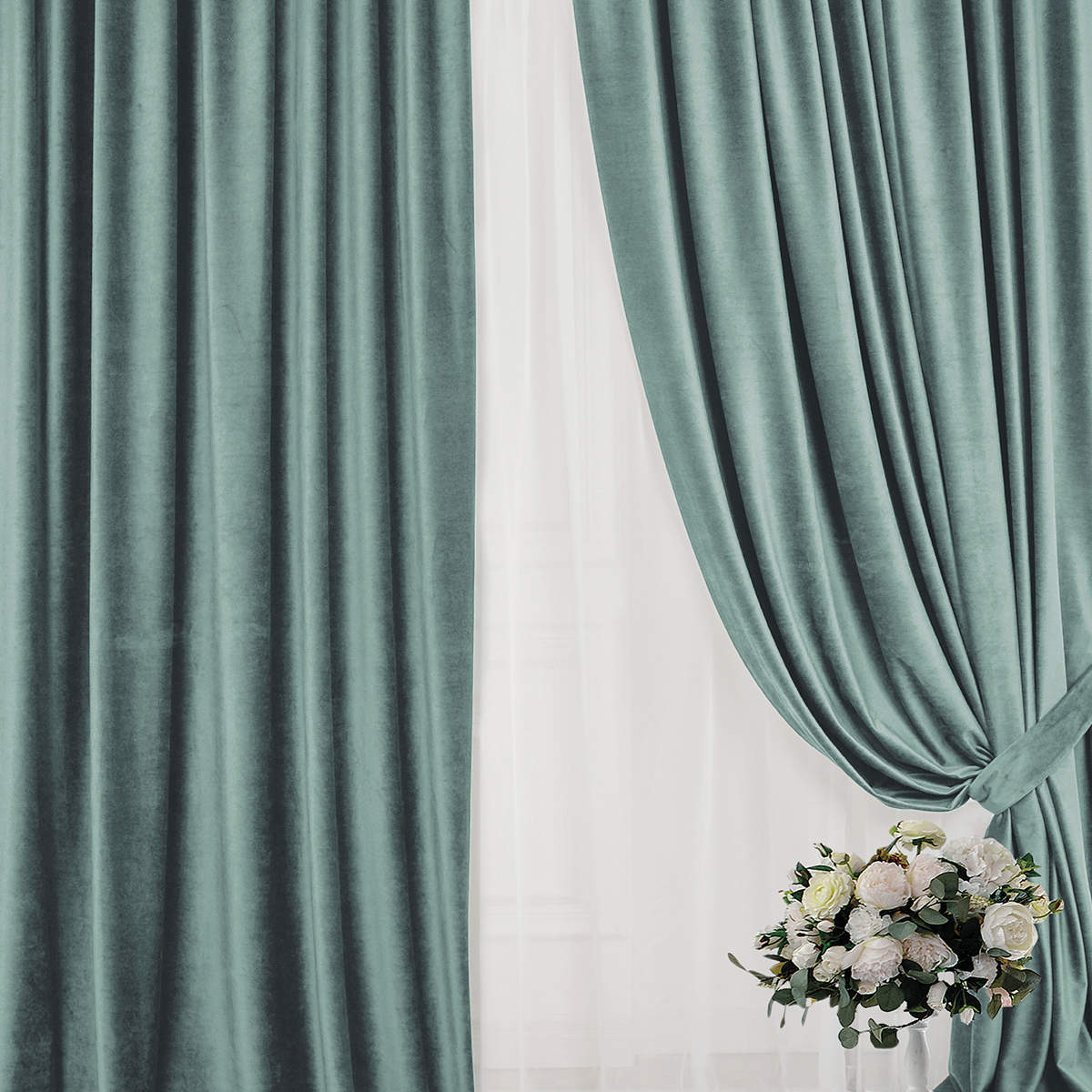Состав: бархат 100% пэ. Портьеры отлично держит форму, не дают усадку и не мнутся.